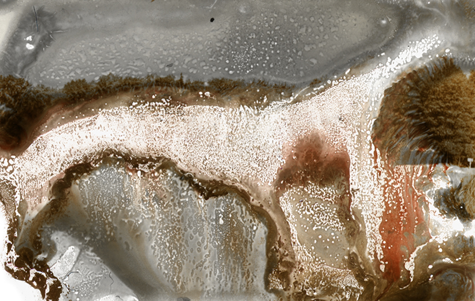 Claus Poulsen presents a series of chemically processed slides under the title "A world in dissolution". The process has been developed and explored over 20 years with early inspiration in the Czech photographic avantgarde. Intuition and coincidences play an active role while the emulsion is dissolving - and what remains emerges with new meaning.